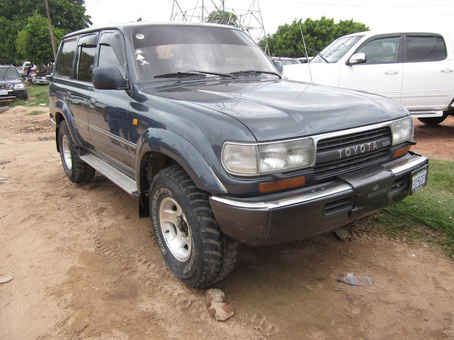 It's a 1992 Toyota HDJ80 Land Cruiser. It has a turbo diesel engine. It has a manual transmission. It's in excellent shape. It's original left-hand drive, not transformed. It even has good tires.